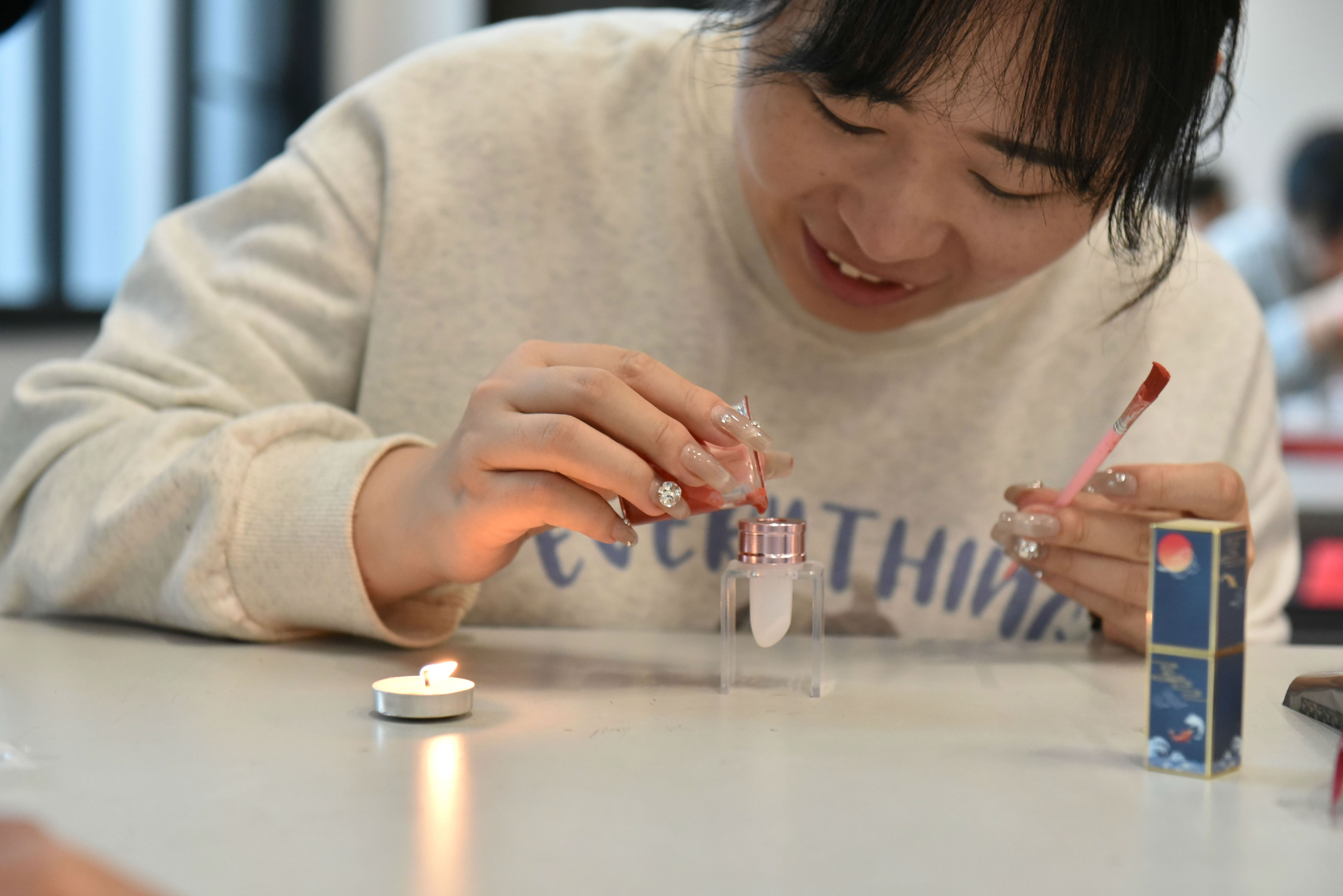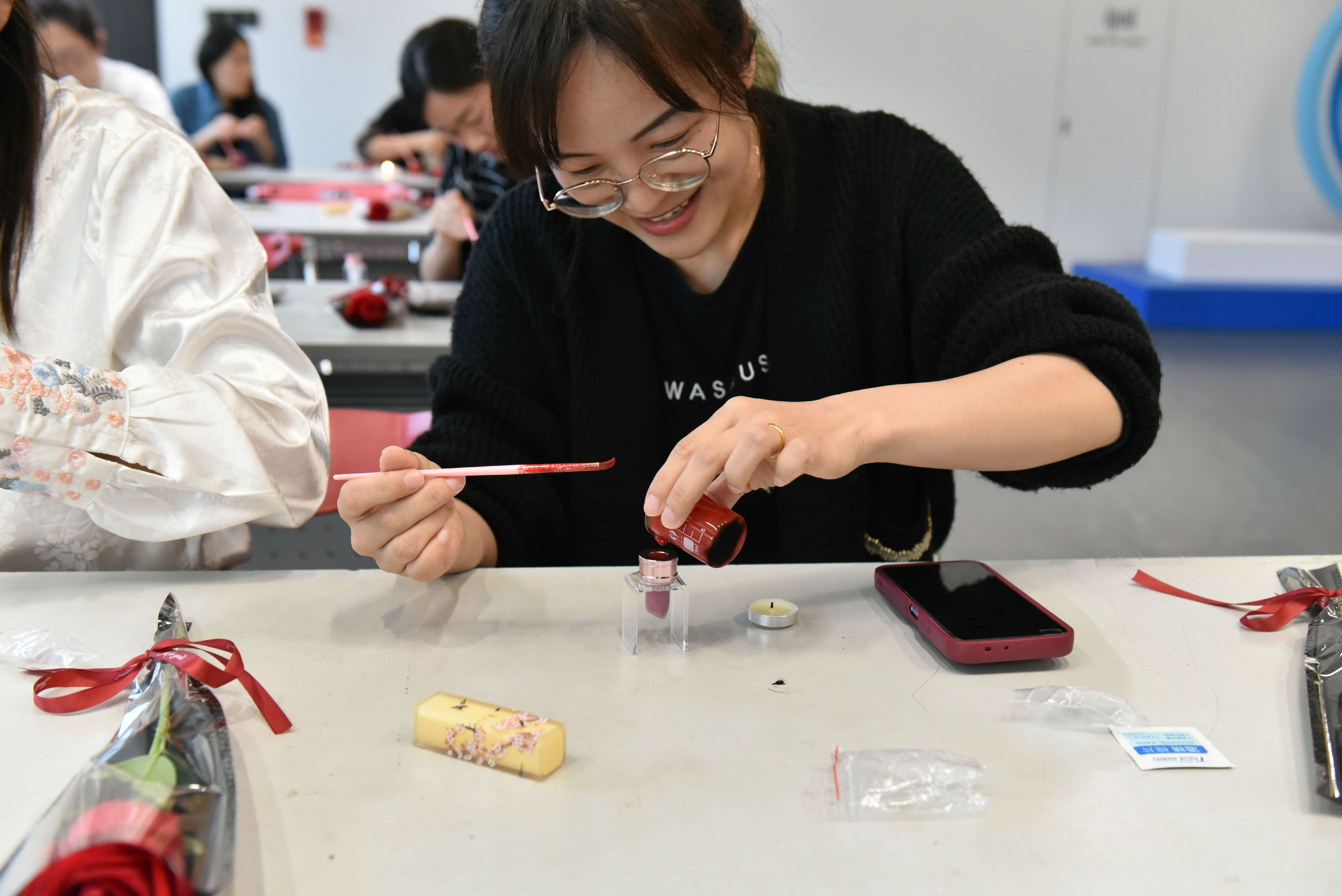 将制作好的口红装入细腻的礼盒里,,,,,,每一份礼物都是一个小小的惊喜,,,,,,期待被开启,,,,,,转达温暖与爱意,,,,,,成为母亲节最奇异的遮掩。。。。。。让爱随着口红靓丽的色彩,,,,,,跳跃在母亲唇间,,,,,,成为她们一样平常的亲密陪同。。。。。。