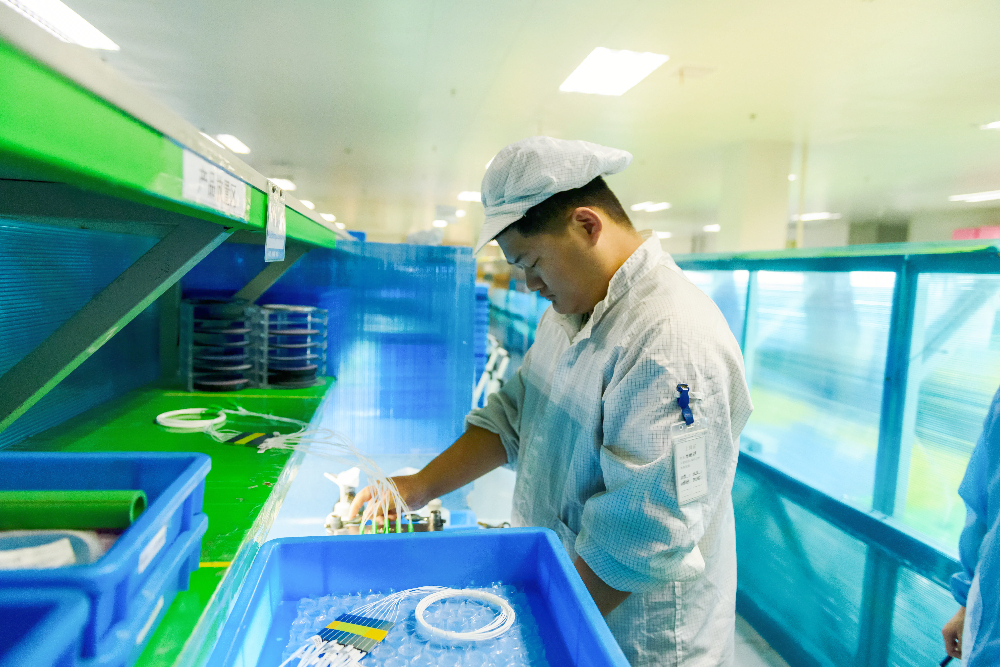 三楼车间,,,,,,,,波分毗连器快速贴标交锋,,,,,,,,展示了贴标事情的高速与精准。。。。。位置、偏向、内容的准确性以及标签外观的整齐,,,,,,,,每一环节都磨练着选手们的专注与熟练度。。。。。